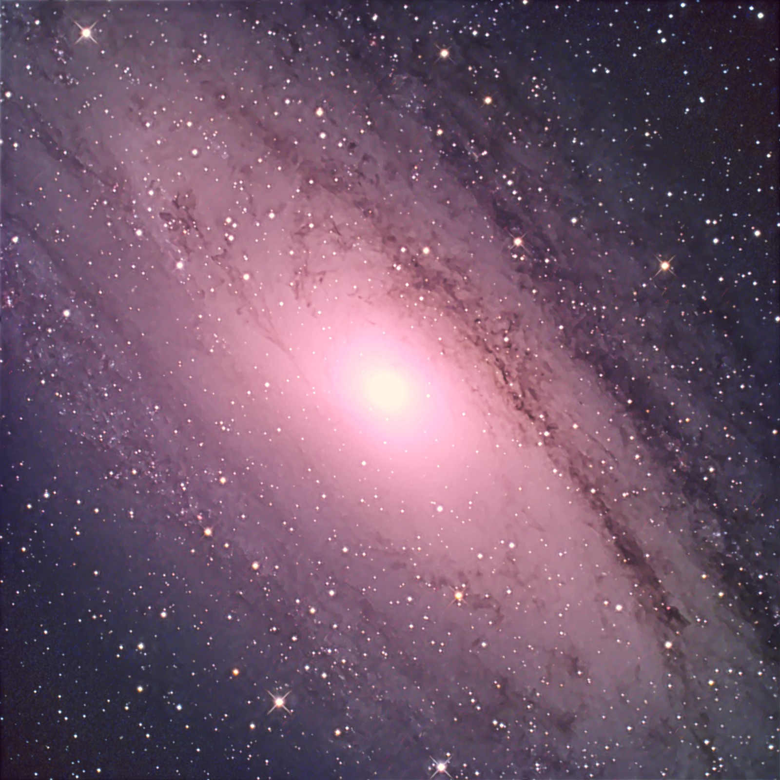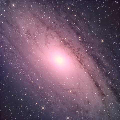 FSQ106が焦点距離が530mmでM31はフォーサーサイズのカメラでは画角が狭い、この光学系は480mm×0.8倍で384mmで画角としては最適である。華やかに仕上げとした。 |