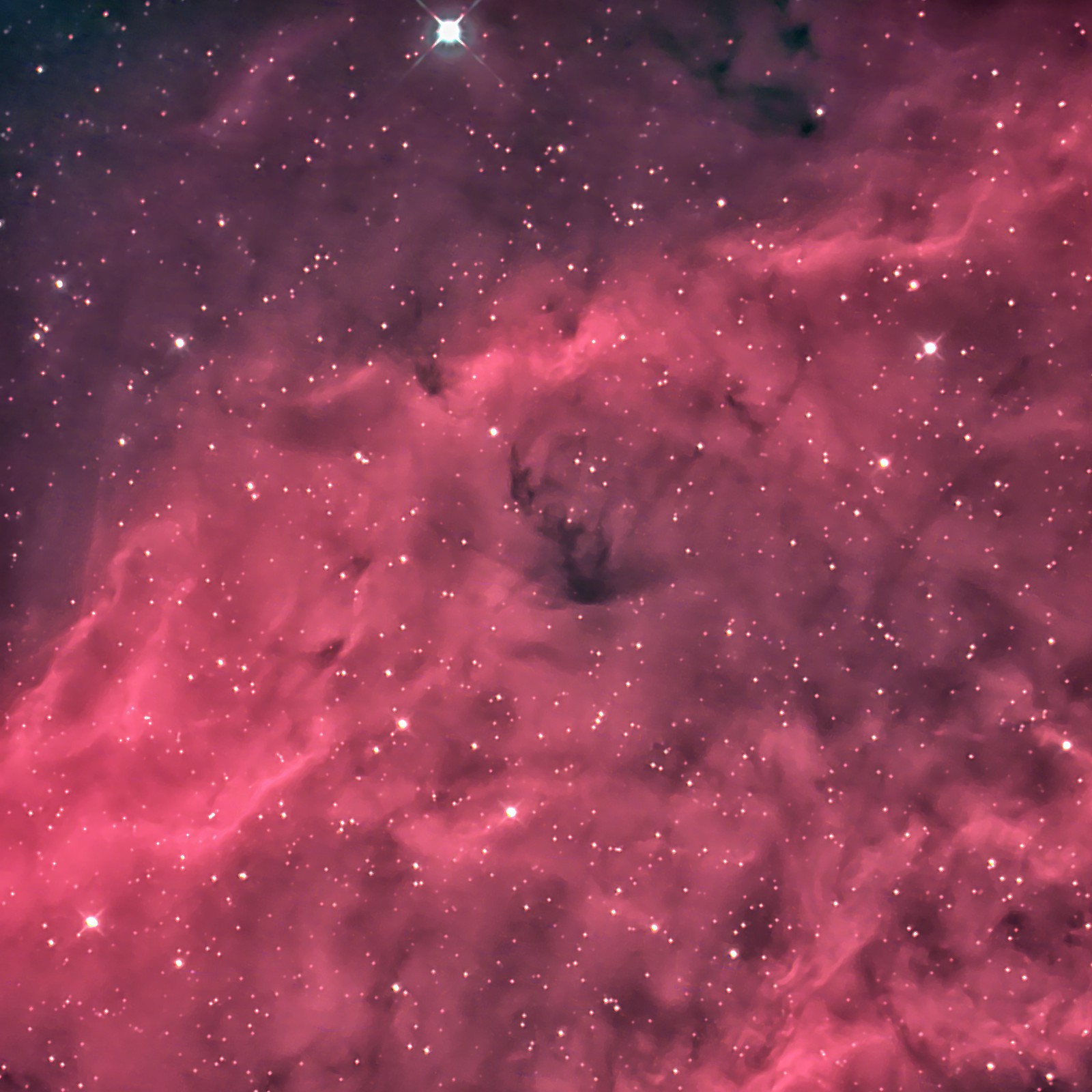 星雲のカラーバランスの調整をしているうちに星の色が黄色になってしまった。SAO合成で自然なカラーバランスは難しい課題である。 |