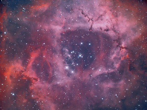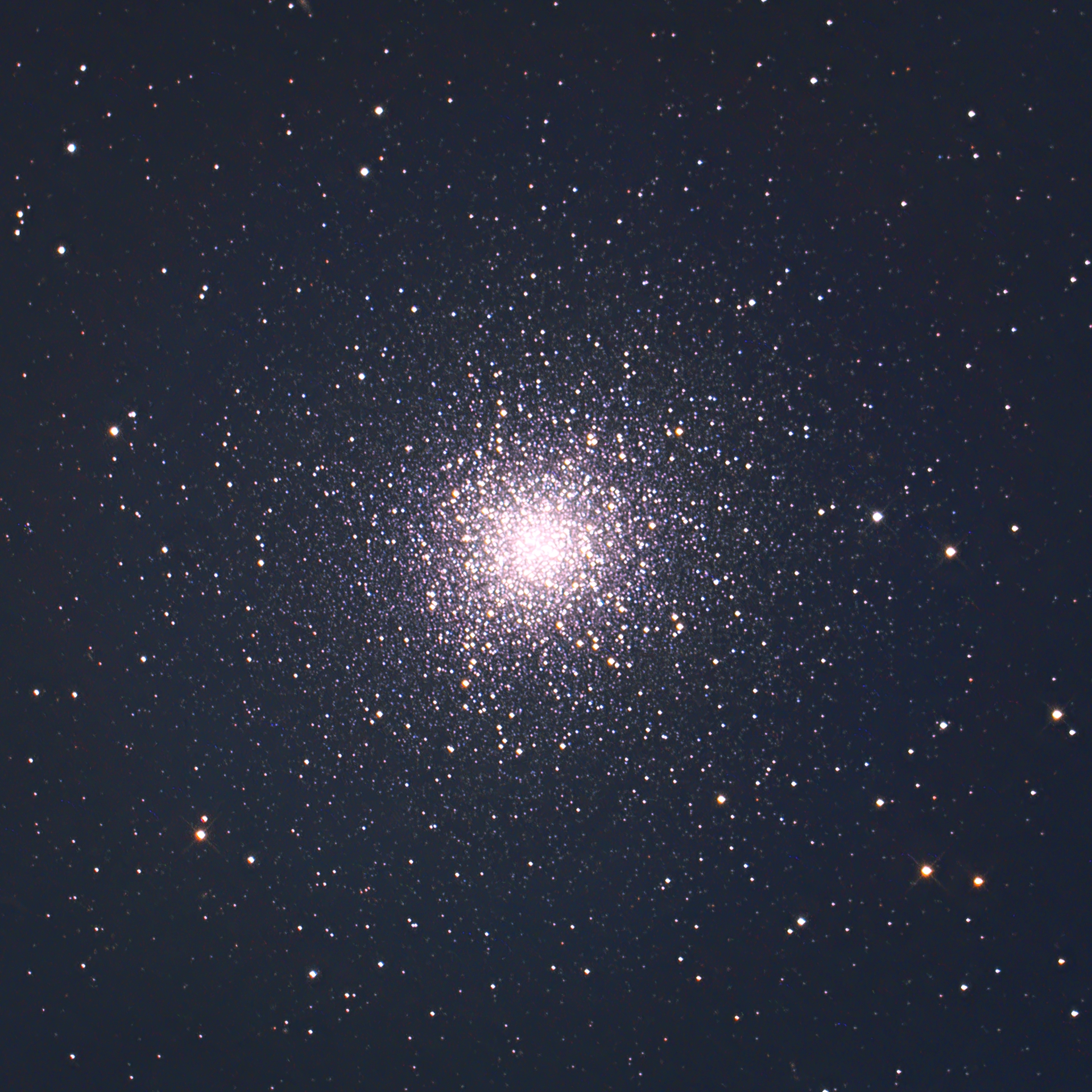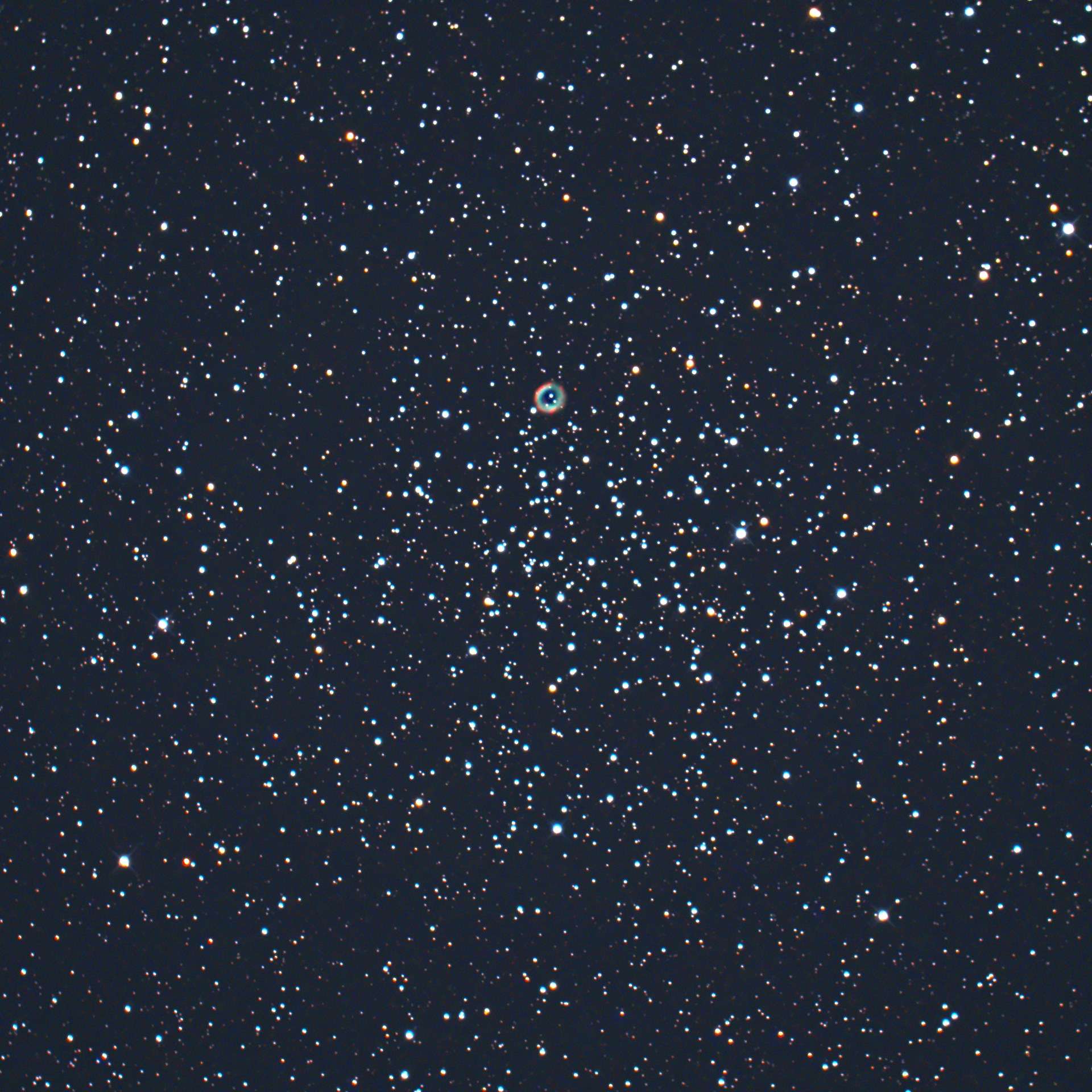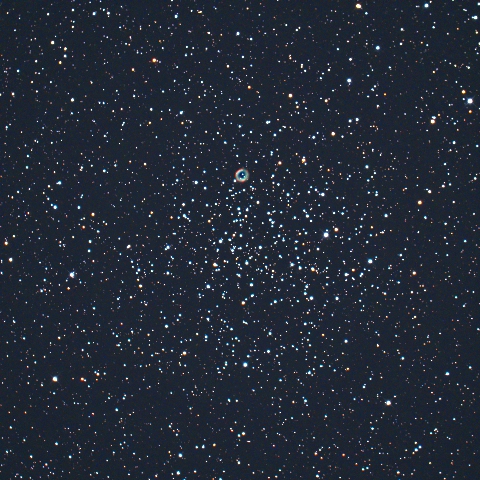 カラフルな散開星団で、淡い星雲と異なり画像処理段階が浅いので星の色が残っている |